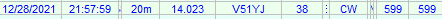 12m-CW未交信のPJ2(キュラソー・オランダ、SA)が出てるようだ。クラスターで色付き表示。呼ぶ局も多くなく無事GET。2021年12月24日金曜日