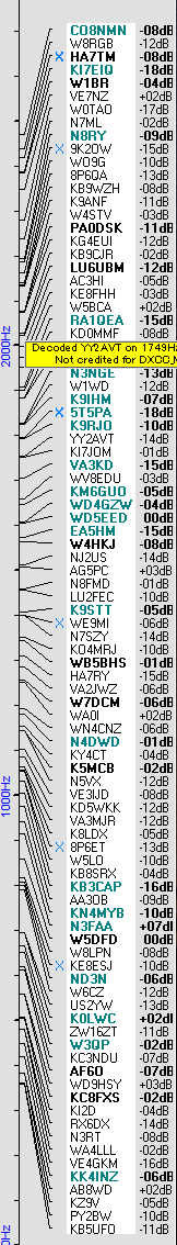 PSKRepoterで相手局受信状態を見ると・・コロラドからニューメキシコ州にかけてがEuから伝搬の限界らしい状況で、当局の位置はぎりぎりの境界上に位置していたようだ。