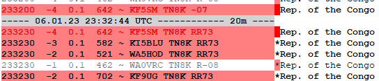 17mでのTN8Kはバンド/モード・ニューとなる。USからは呼ぶ局数が多い点をのぞくと、伝搬も良くQSO自体は難しくはなさそうだ。