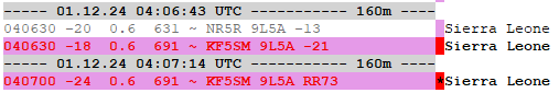 80mと違い呼んでいる局が数局しか見えていなく、案外私みたいに諦めている局が多かったのでは。160m Band Newとなります。いただいたレポートは-21dBと限界に近い状況でした。わたしのほうへは-13dBまで上がってきていました。
